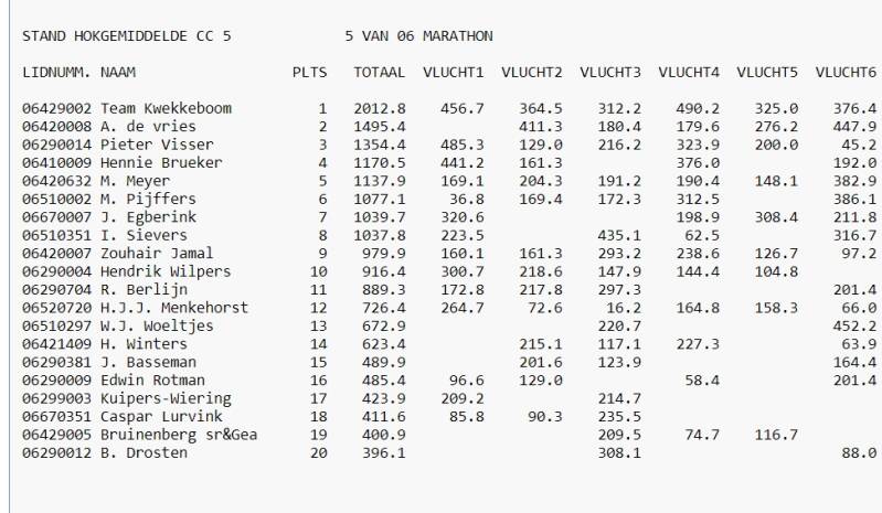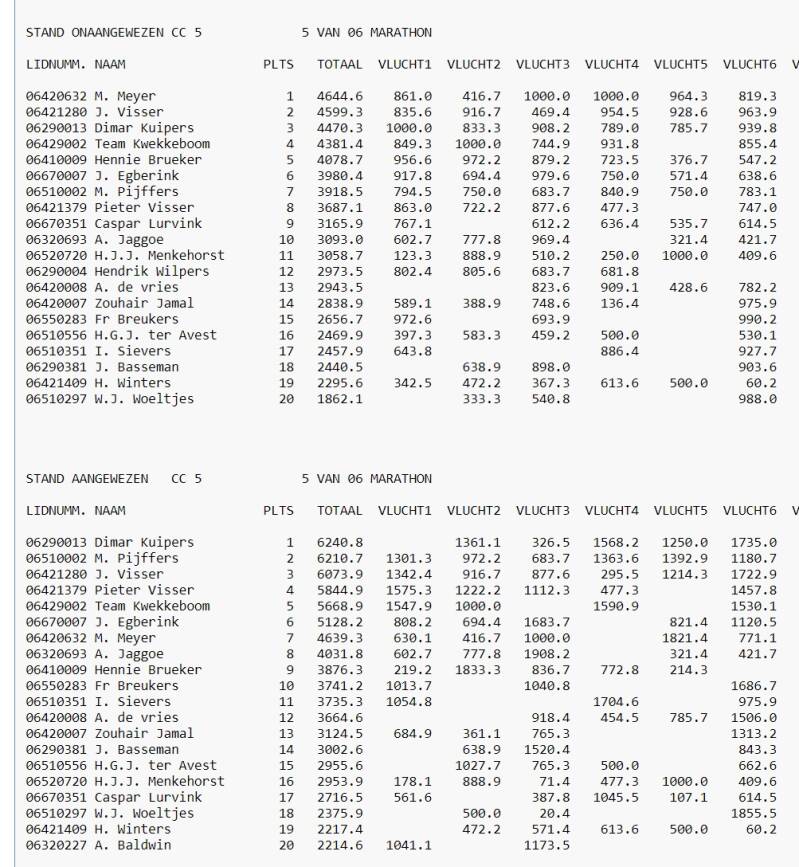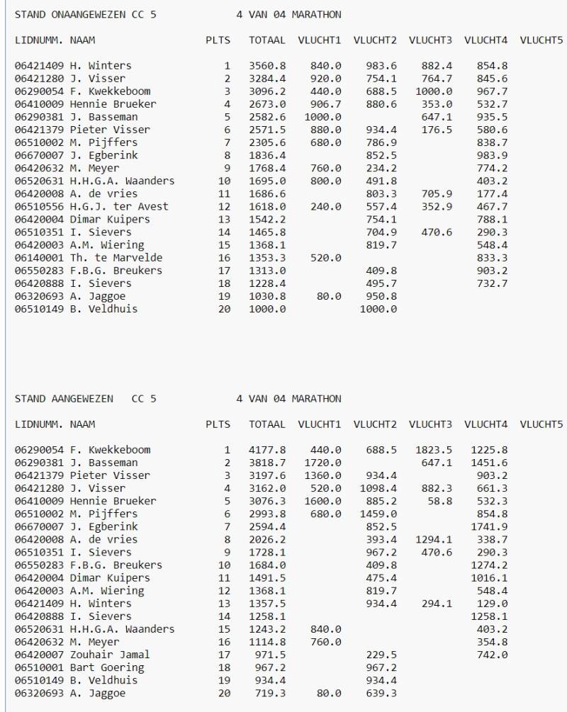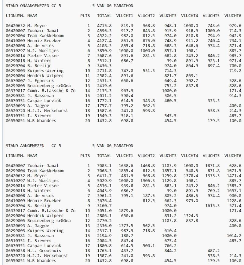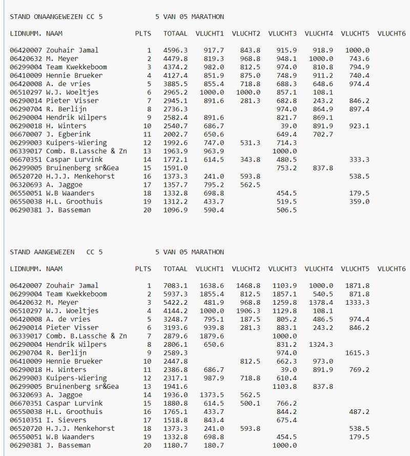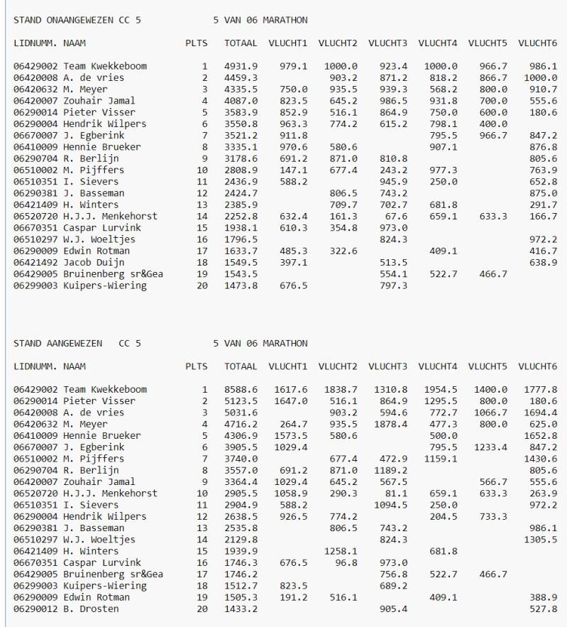 Eind Standen Marathon 2024 in Cc5 Afdeling 9