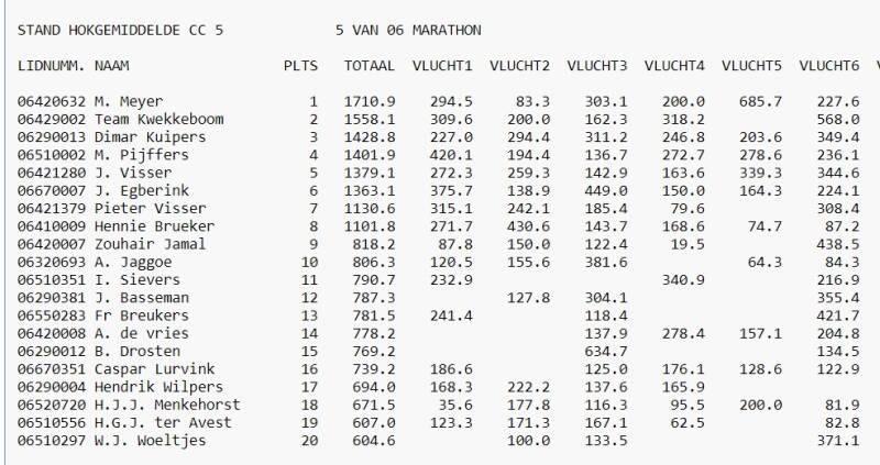 DUIFKAMPIOENEN C.C.5 EINDSTAND 6/6 OVERNACHTFOND 2022
