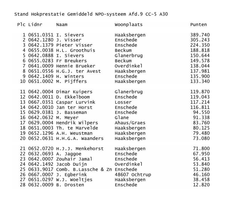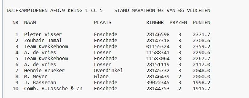 NR NAAM PLAATS RINGNR PRYZEN PUNTEN